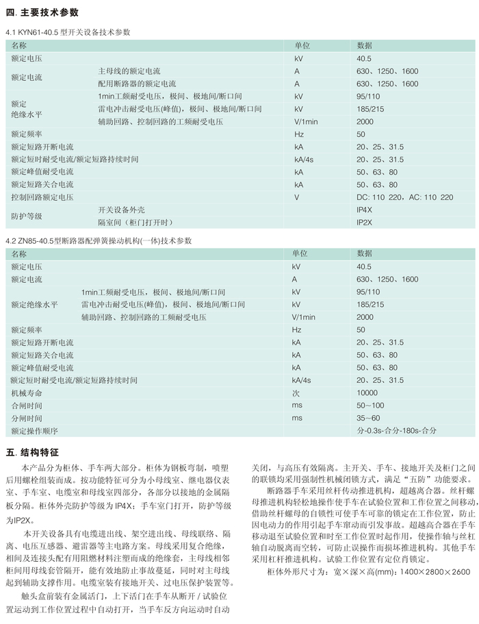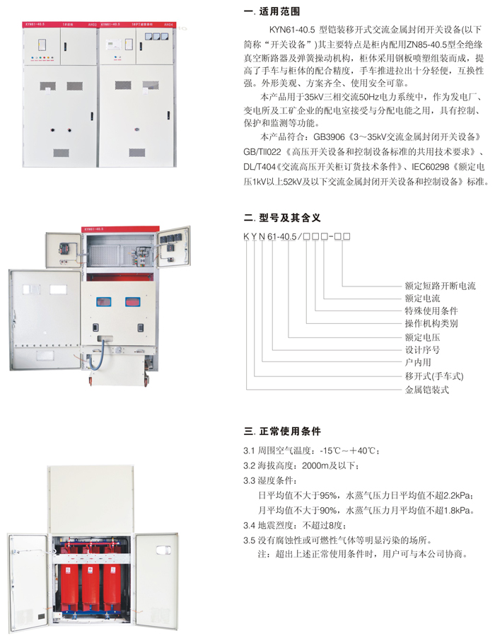 KYN61-40.5 型鎧裝移開式交流金屬封閉開關(guān)設(shè)備