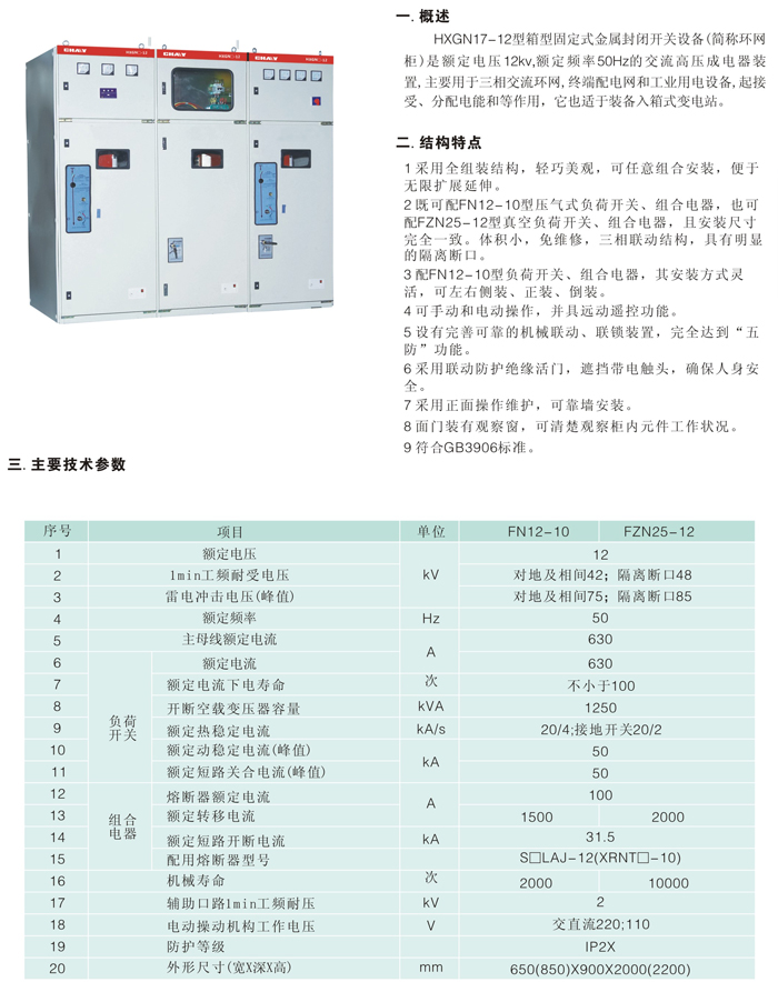 HXGN□-12箱型固定式金屬封閉開關(guān)設(shè)備
